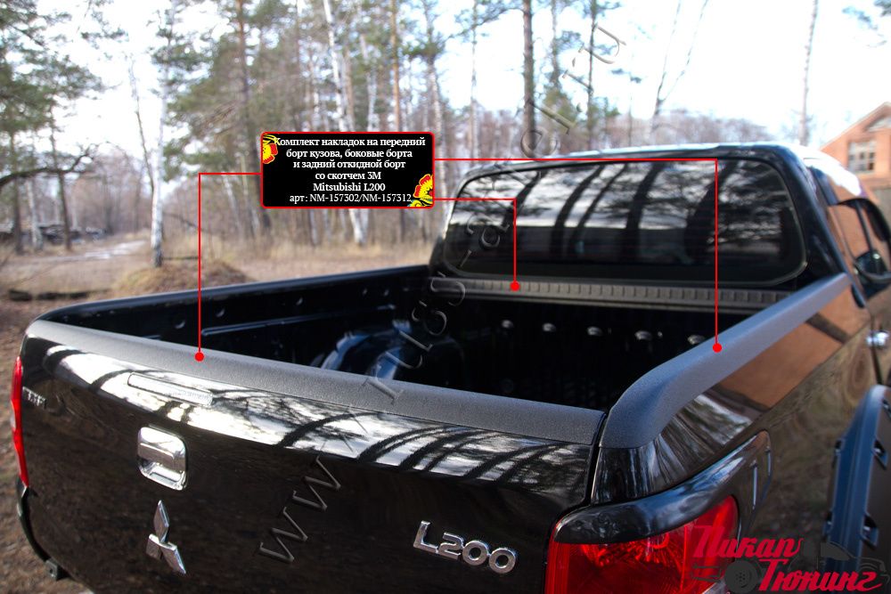 Комплект накладок на передний борт кузова, боковые борта и задний откидной борт со скотчем 3М