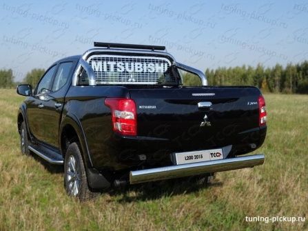 Защита заднего бампера для пикапа Mitsubishi L200 2015-2018 – это аксессуар для тюнинга, который придаст вашему автомобилю более оригинальный и завершенный вид, а также защитит пластиковый бампер от механических повреждений. Изготовлен этот защитный элемент из нержавеющей трубы 120х60 мм с никелированным покрытием.